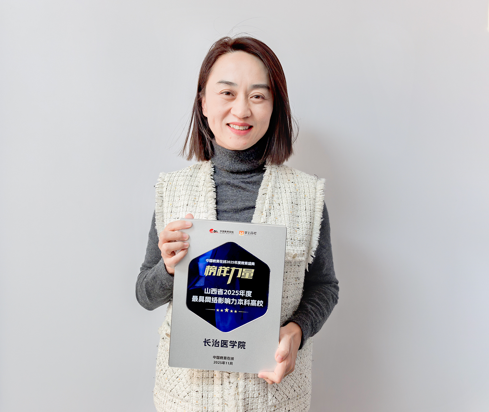 近日,中国教育在线“榜样力量·2025年度教育盛典”优秀案例名单公布。长治医学院凭借极具创新性与前瞻性的招生宣传策略,以及扎实过硬的宣传执行实力,从众多高校中突围,获评“2025年度最具网络影响力本科高校”。