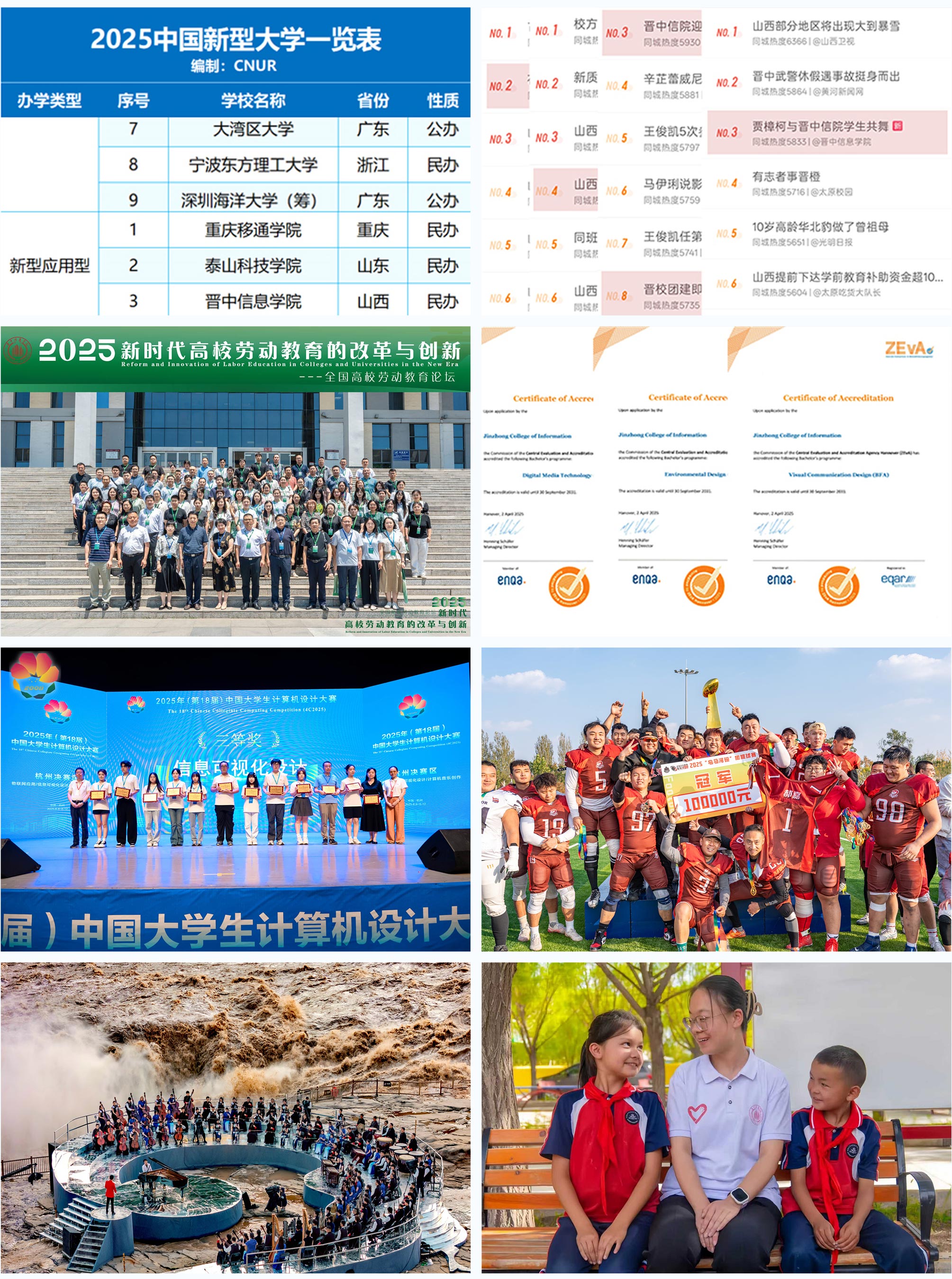 近年来,学校办学成果显著,综合实力与社会声誉同步提升。2025年,学校先后获评全国高校示范“一站式”学生社区、全国仅有的3所“新型应用型本科大学”之一,并荣获“2025年度最具网络影响力本科高校”称号。在专业建设方面,数字媒体技术等3个专业无条件通过德国ZEvA国际认证;在素质教育领域,乌马河橄榄球联盟填补省内空白,花儿合唱团亮相国家级舞台;学生在全国高水平学科竞赛中屡获一等奖,学校优秀毕业生、西部计划志愿者王艺枝、黄少竹所在的西部计划志愿者服务队荣获2025年度“中国青年五四奖章”,王艺枝作为服务队代表执笔写信并收到总书记回信。这些标志性成果,充分体现了学校高质量发展的坚实步伐。