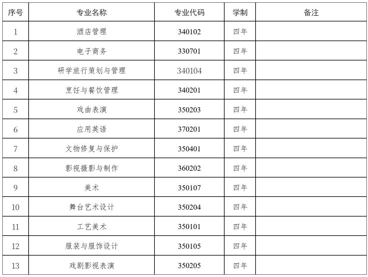 近日,山西文化旅游职业大学发布《关于2026年拟新增职业本科招生专业的公示》。根据教育部《本科层次职业教育专业设置管理办法(试行)》文件要求,经公开申报、教学管理运行组初审、专家评审、学校审议等环节,拟申报新增酒店管理等13个专业为2026年职业本科拟招生专业(详见下表)。