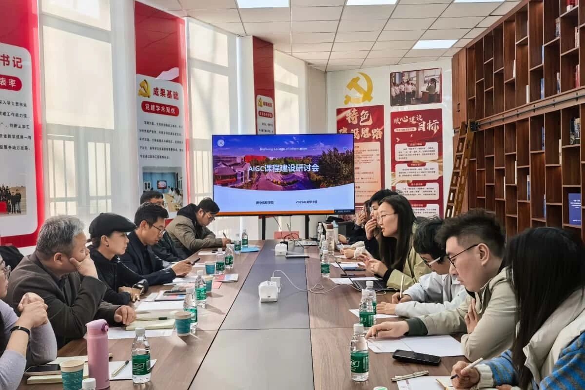 学校信息工程学院、艺术传媒学院等相关教师和嘉宾围绕AIGC课程设置、教学实践中的痛点与解决方案展开热烈讨论,从技术应用与传统教学的平衡、学生创新思维培养等角度分享了各自的经验与思考。思想的碰撞让“融合”二字逐渐落地为具体的教学思路,也为学校后续修订人才培养方案、优化课程体系提供了有益参考。