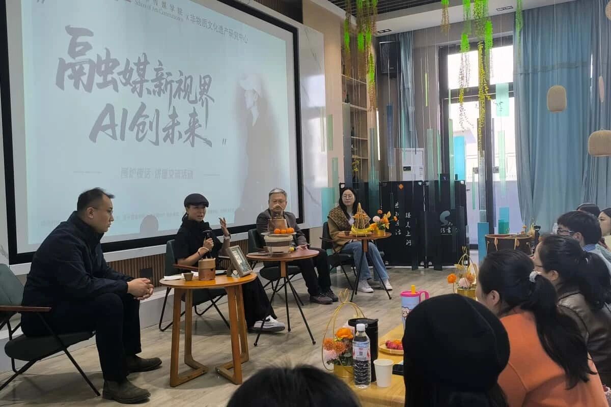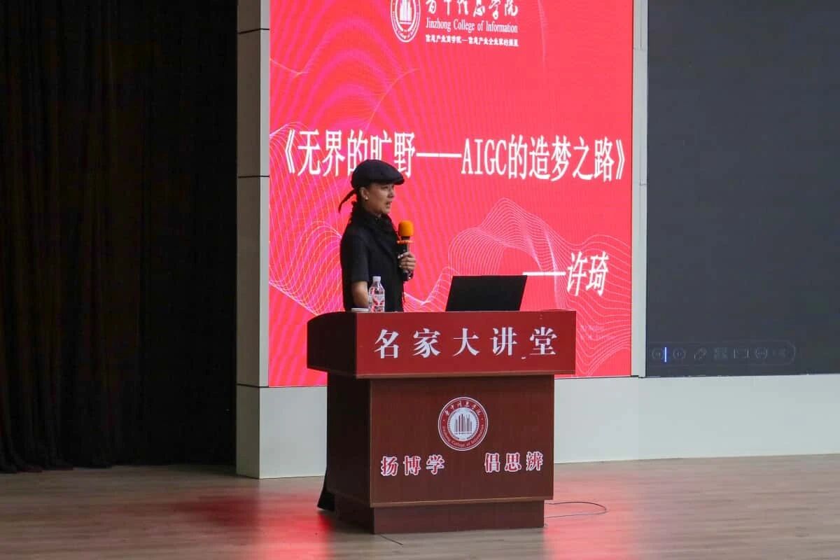 从低预算广告片到央视纪录片,从传统艺术到AI短剧实验,许琦副教授通过大量实战案例,层层拆解了AI如何赋能普通创作者、AIGC如何重构影视制作流程,以及当代大学生如何抓住这一技术平权的时代机遇。她鼓励在场学子,在无界的旷野上,每个人都有成为“数字绘梦师”的可能。互动环节中,现场师生围绕“AI是否会取代艺术创作者”“技术平权时代如何保持个人独特性”等话题与许琦副教授展开深入交流。现场气氛热烈。这场讲座不仅拓宽了师生在人工智能与艺术交叉领域的学术视野,也为探索非遗文化的数字化表达提供了新的思路。