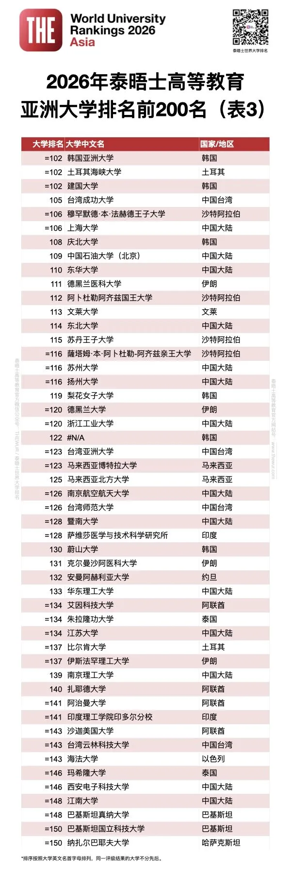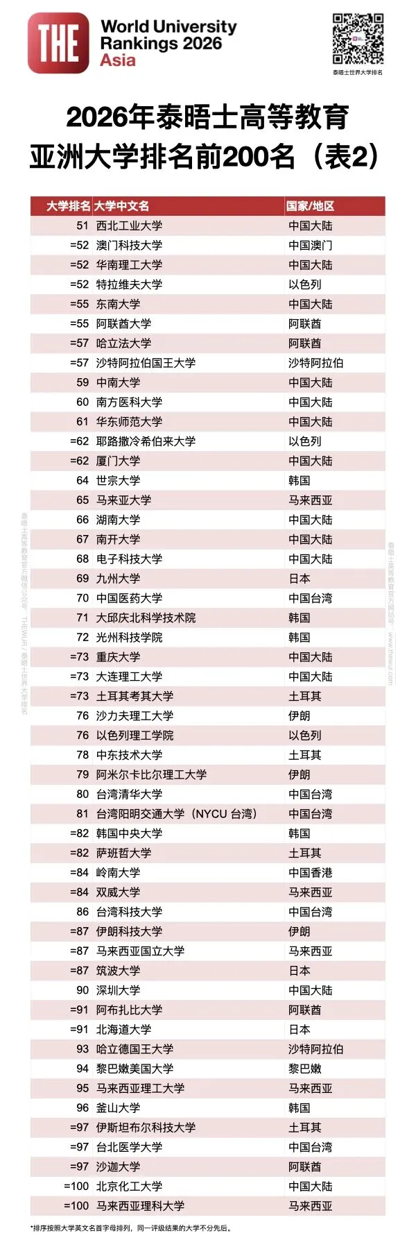 ·中国大陆高校在2026年亚洲大学排名中领跑,包揽了亚洲前两名
