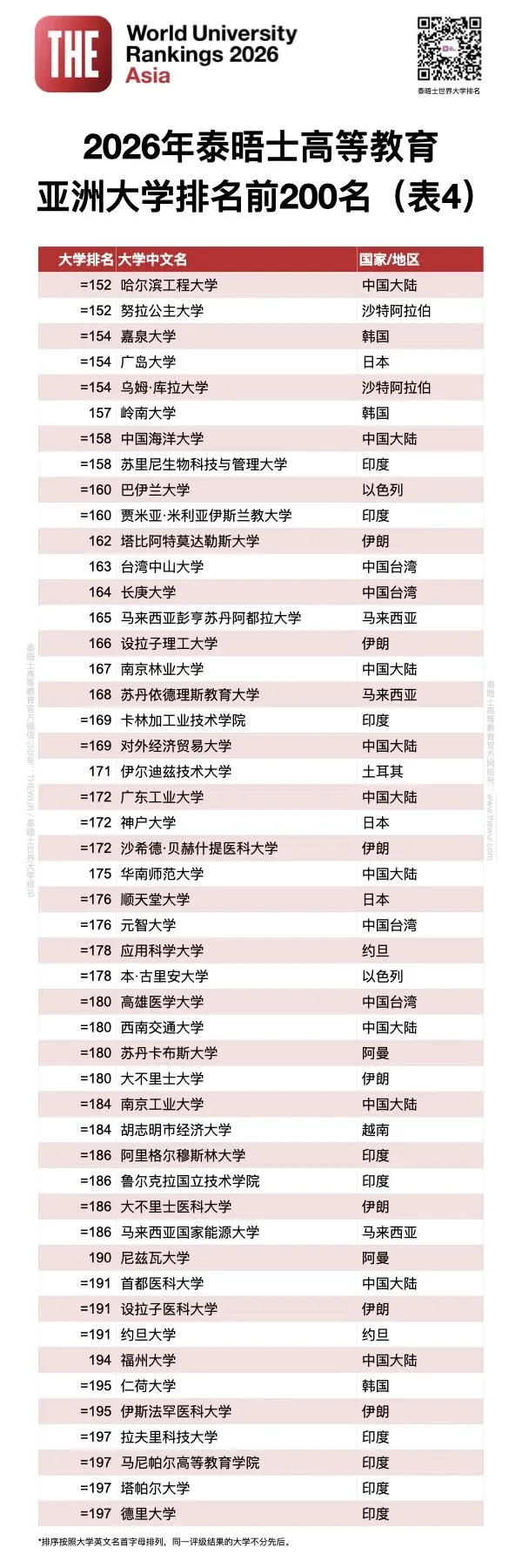 亚洲大学top200: