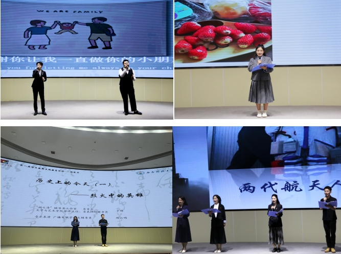 随后,学校“润之泽”辅导员工作室的老师们为全体24级新同学带来了“听见.家书”朗诵。节目以“历史上的今天”为主线,由工作室负责人于婧和新生辅导员陶江明情景表演,再现了在1953年10月12日,抗美援朝战争中在烈火中牺牲的战斗英雄邱少云一生唯一的一封家书,展现了邱少云保家卫国的英勇事迹和坚守奉献的精神。新生辅导员黄月萍、黄凤通过讲述2005年10月12日我国神舟六号载人航天飞船成功发射的故事,展现了航天员聂海胜与聂迪父子传承航天精神,续写优良家风的事迹。这些“灯火里的中国”的英雄故事进一步鼓励青年学生要树立远大志向和践行担当精神。老师们的表演铿锵有力,激励着同学们积极承担起时代赋予的责任,为实现中华民族的伟大复兴贡献自己的青春力量。