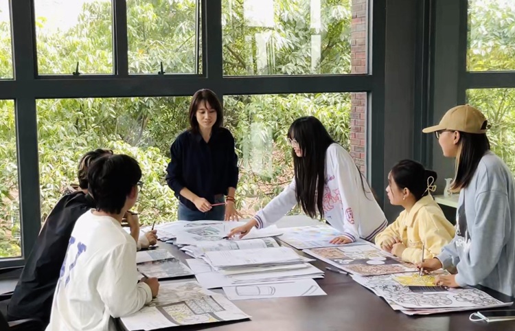 他们引导学生打破专业壁垒,融合艺术、科技、商业等多维视角,以复杂真实问题为研究课题,积极开展跨学科协作。学生不仅学习如何从纹样、色彩、工艺中提取文化符号,更尝试将AI工具、新媒体语言融入设计实践,让非遗技艺在当代生活中焕发新的生命力。