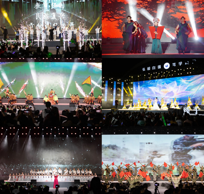 晚会以“海棠薪传”“沫若流芳”“征程扬帆”3个篇章层层递进,用朗诵、歌曲、舞蹈、音诗画和情景剧等形式,从不同角度、不同层面展现了乐师的独特魅力与文化底蕴,全面彰显了学校立德树人的育人成效。这场晚会,是乐师人奋发风采的集中展示,更是给2025级新同学的一份充满诚意的欢迎礼。