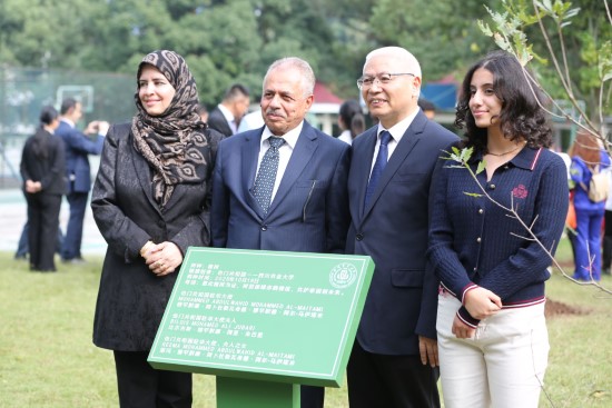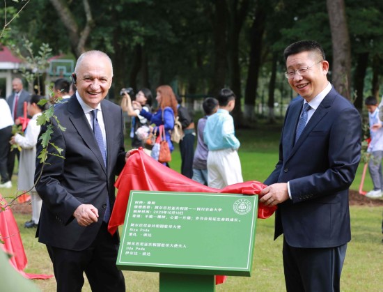 学校党委书记刘登才,校长吴德,党委副书记张强,副校长王际睿,党委常委、宣传部部长蒋远胜,与民盟中央教育委副主任、澜之教育基金会常务理事张雯松,四川省教育厅二级巡视员赖英莉,雅安市副市长曾琦等中方嘉宾一道,共同迎接阿尔巴尼亚驻华大使里扎·波达,也门驻华大使穆罕默德·阿卜杜勒瓦希德·穆罕默德·阿尔-马伊塔米,肯尼亚驻华大使威利·吉普科里尔·贝特,土耳其驻华大使塞尔丘克·于纳尔,佛得角驻华大使阿林多·纳斯西门托·多罗萨里奥,巴哈马驻华大使波莱特·安妮·贝塞尔,巴拿马驻华大使米格尔·温巴托·莱卡罗·巴尔塞纳,越南驻华大使夫人黄氏香江,牙买加驻华大使亚瑟·威廉姆斯,巴基斯坦伊斯兰共和国参赞戈哈尔·哈西布,阿拉伯埃及共和国参赞萨米尔·萨米尔·阿卜杜勒法塔赫·加尔斯丁一行,与他们一起在工学楼后种下11株友谊之树,并为“国际友谊林”石碑揭幕,祝愿中外友好合作如树常青、枝繁叶茂。