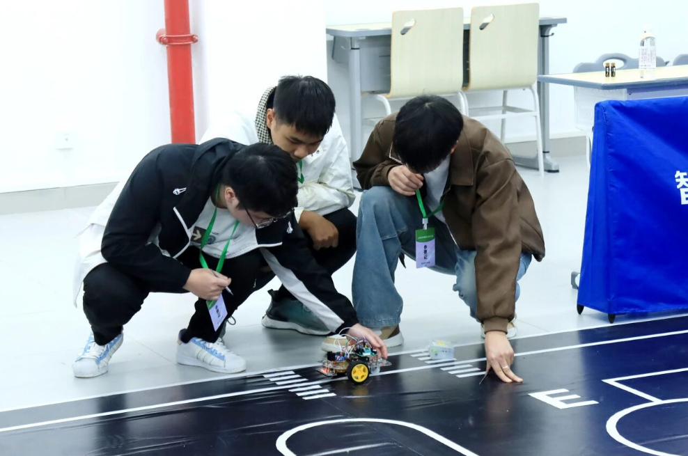 本次校赛以“智启未来・竞逐赛道”为核心主题,聚焦智能硬件与程序控制的综合应用,吸引了全校各学院42支队伍报名参赛。经过严格车检筛选,23支队伍成功突围,带着自主设计或改装的智能循迹小车,在包含直线、弯道、S形曲线、十字交叉、环形路段的复合赛道上,展开了一场“精度与速度”的双重较量。