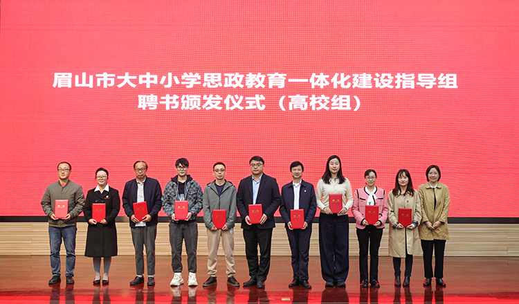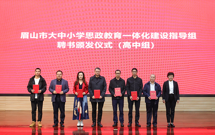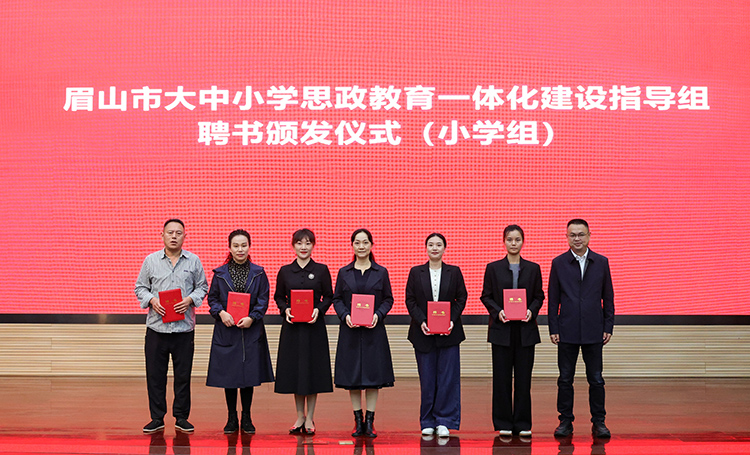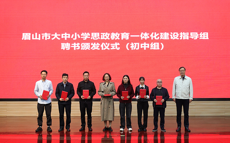 仪式上还举行了眉山市大中小学思政教育一体化建设指导组聘任仪式。与会领导分别为高校组、高中组、初中组、小学组专家颁发聘书。这支由46名思政名师组成的指导队伍,实现大中小学全覆盖,将为“东坡思政”品牌打造、教学改革深化及课题研究开展提供专业化、常态化支撑,构建起上下贯通的思政教育指导体系。