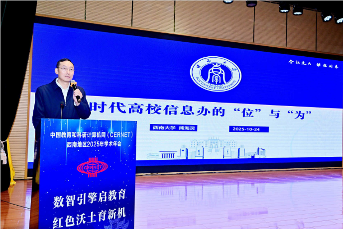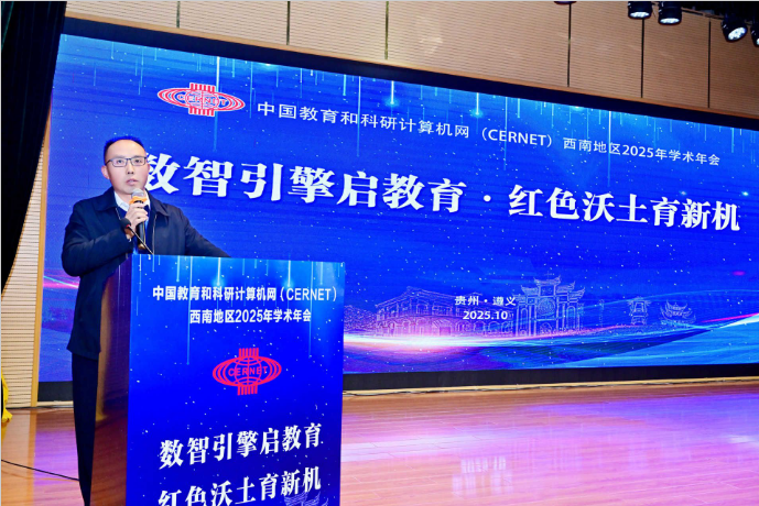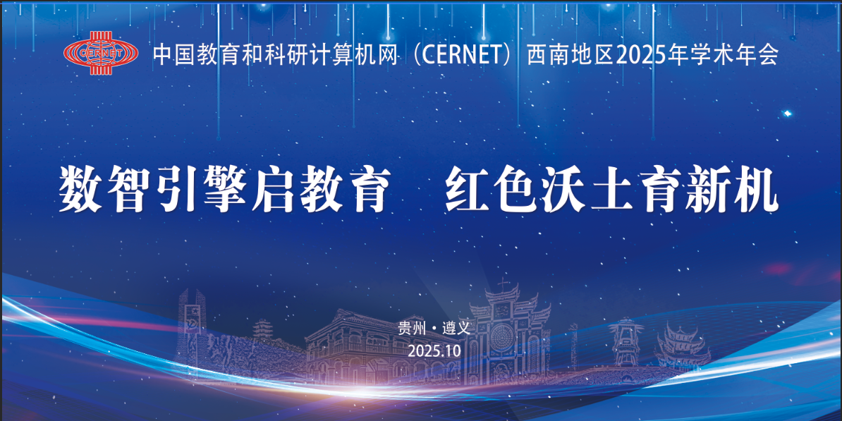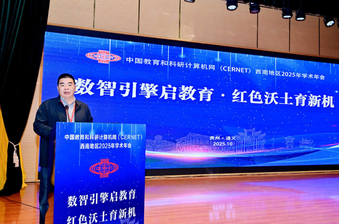 10月24日,中国教育和科研计算机网(CERNET)西南地区2025学术年会在贵州遵义召开。本次会议由电子科技大学主办,贵州大学、遵义师范学院联合承办,以“数智引擎启教育,红色沃土育新机”为主题,聚焦数智技术驱动教育创新与区域发展进行了深入探讨。