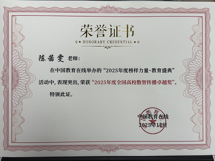 此次陈茜雯老师荣获“2025年度全国高校数智传播卓越奖”,不仅为学校争得了荣誉,也为全国高校传播工作者树立了榜样。在未来的工作中,陈茜雯老师将继续砥砺前行,深入探索数智传播的无限可能,为学校的文化传承与创新发展,以及全国高校数智传播事业的进步贡献更多的智慧与力量。在她的专业支撑下,成都东软学院将持续深化数智传播领域的创新实践,通过构建现代化传播体系,不仅为高校传播工作注入新动能,更将有效推动教育信息化建设的整体发展。
