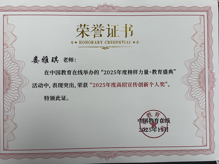 这一殊荣不仅是对娄雅琪老师个人在高招宣传工作中的高度认可,更是彰显了学校在招生宣传创新方面的坚定决心与显著成效。她的成功经验将激励更多的教育工作者勇于创新、敢于实践,为学校的招生工作注入新的活力与动力。