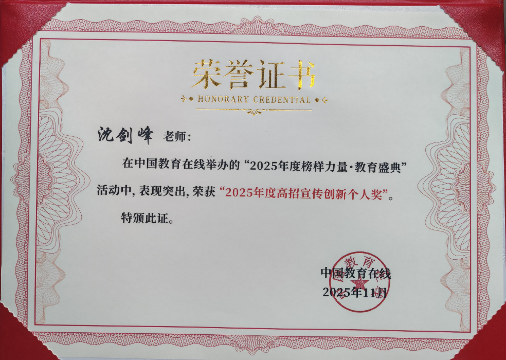 这一殊荣不仅体现了沈剑峰老师在高招宣传工作中的突出贡献,更反映出学校在招生宣传创新领域的战略布局与显著成果。通过系统总结其成功经验,将有效引导广大教育工作者积极探索创新实践路径,从而为学校招生工作持续注入发展动能。