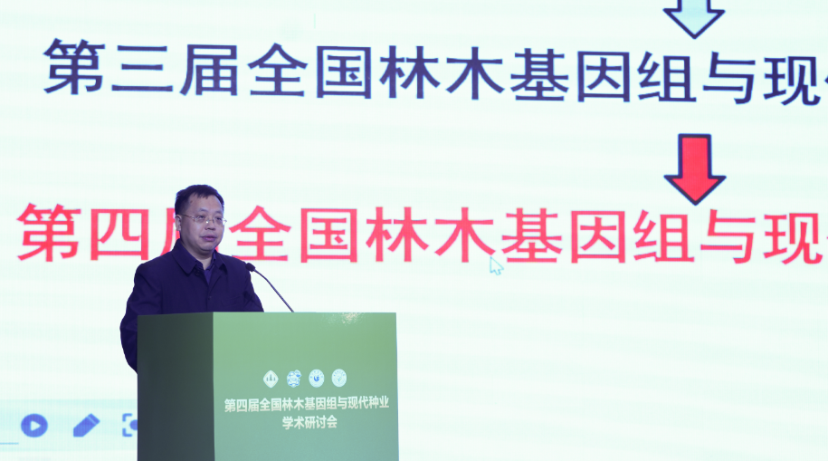 王军辉在致辞中表示,本届研讨会以“人工智能背景下的林木现代种业”为主题,既延续了历届学术脉络,也直面产业瓶颈、积极拥抱科技变革,具有重要的现实意义与前瞻性,必将为林木现代种业高质量发展注入强劲动力。