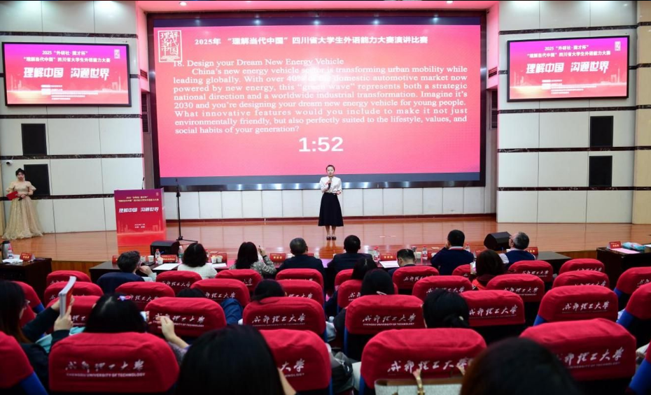 11月1-2日,由四川省教育厅主办,成都理工大学承办的“外研社·国才杯”“理解当代中国”全国大学生外语能力大赛四川赛区决赛在成都理工大学成都校区顺利举行。该项赛事作为教育部高等教育学会发布的“中国高校创新人才培养暨学科竞赛”里唯一一项英语竞赛,赛事分为英语演讲组、综合组、笔译组、口译组和短视频组。