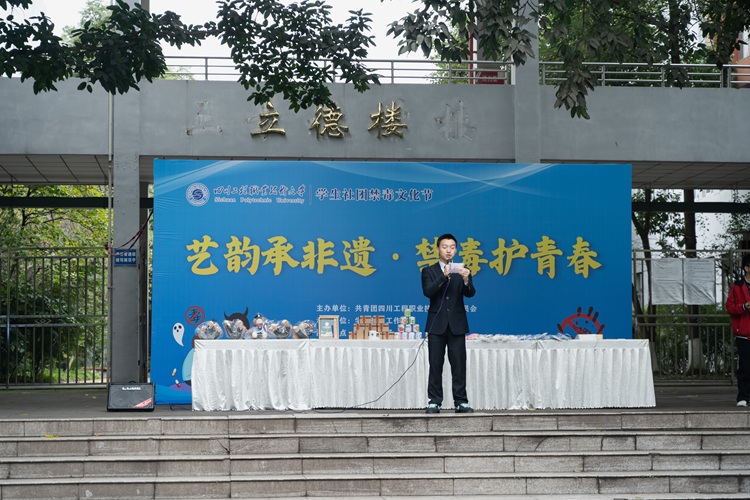 为深入贯彻禁毒工作相关指示精神,落实毒品预防教育工作要求,按照四川省第八届大学生社团禁毒文化节工作要求,11月6日下午,由四川工程职业技术大学校团委主办、学生社团工作部承办的“艺韵承非遗・禁毒护青春”主题禁毒文化节活动在立德楼广场成功举办。