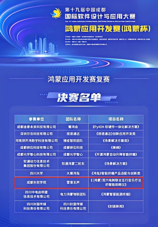 近日,第十九届中国成都国际软件设计与应用大赛鸿蒙应用开发赛圆满落幕。成都东软学院学生团队在与众多参赛团队的竞争中脱颖而出,成功晋级全国总决赛。成都东软学院作为全省唯一入围的民办高校,与四川大学共同跻身决赛圈,成为全省仅有的两所晋级高校,充分彰显了学校学子在技术实践与创新领域的强劲实力。