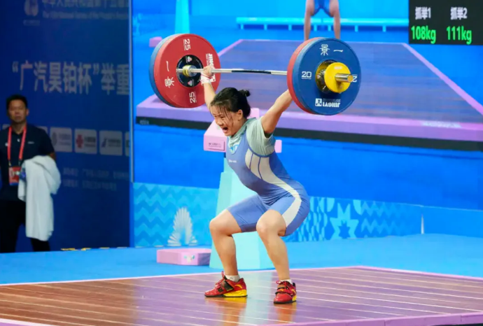 随后,她乘胜追击,第二把稳稳举起111公斤,进一步扩大优势。面对对手的步步紧逼,方淋在第三把向113公斤发起冲击,伴随着现场观众的欢呼声,她成功锁定这一重量,最终以113公斤的抓举成绩结束该阶段比拼,领先第二名2公斤的优势进入挺举环节。
