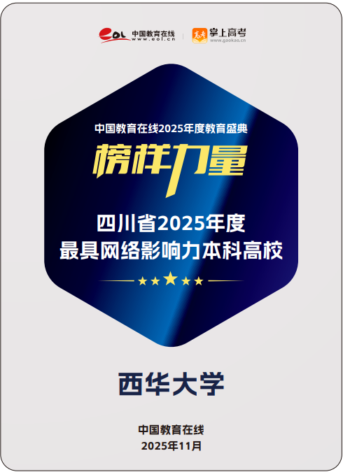 近日,中国教育在线“榜样力量·2025年度教育盛典”优秀案例名单公布。西华大学凭借极具创新性与前瞻性的招生宣传策略,以及扎实过硬的宣传执行实力,从众多高校中突围,获评“四川省2025年度最具网络影响力本科高校”。