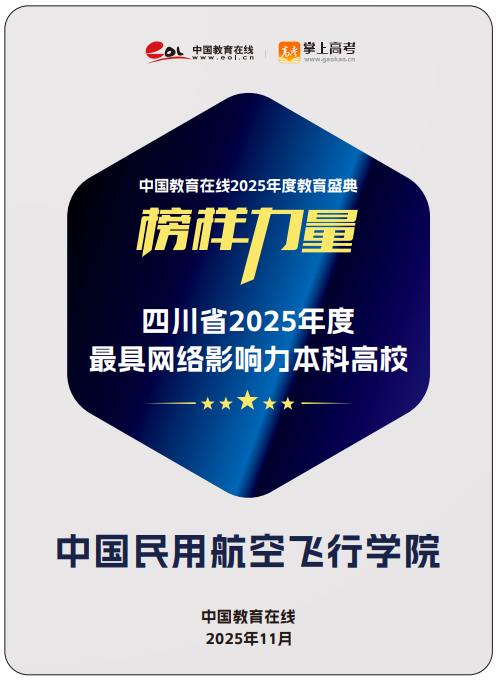 近日,中国教育在线“榜样力量·2025年度教育盛典”优秀案例名单公布,中国民用航空飞行学院凭借极具创新性与前瞻性的招生宣传策略,以及扎实过硬的宣传执行实力,从众多高校中突围,获评“四川省2025年度最具网络影响力本科高校”。