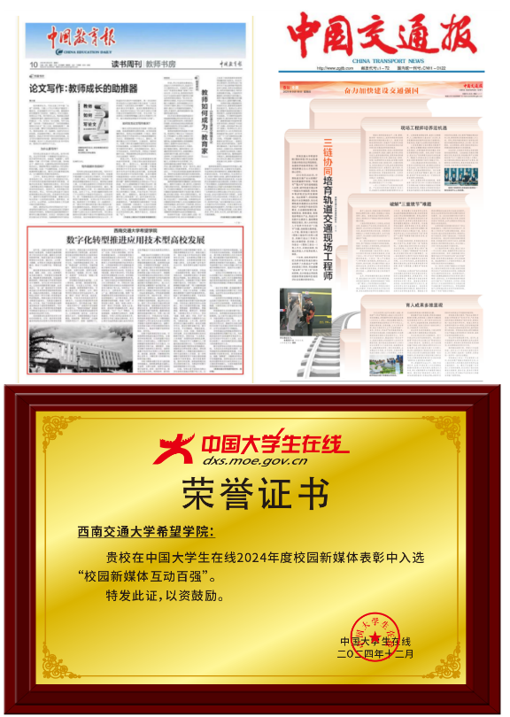 “十四五”期间,西南交通大学希望学院通过强化政治引领、深化铸魂工程、创新宣传叙事、厚植国防情怀等方式,构建起特色鲜明的“三全育人”体系。面向“十五五”,学校正以更加昂扬的姿态,朝着建设一流应用技术型大学的目标奋勇前进。