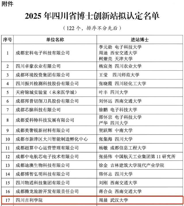 近日,四川省科学技术协会正式公布首批122个四川省博士创新站认定名单,吉利学院凭借在航空航天、卫星遥感等领域的持续创新能力和扎实的产学研合作成果,以“天地一体闪电预警定位系统项目”为依托,成功入选首批四川省博士创新站。这一殊荣不仅是对学校长期致力于科技创新与成果转化工作的高度认可,更是学校践行“企业命题、学校接题”模式,推动产学研深度融合的有力印证。