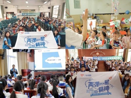 在青少年“核梦启航”科普教育计划中,宣讲团致力于知识启蒙与兴趣引导,根据低龄儿童与中小学生的认知特点,量身定制多元化互动宣讲模式。成员们走进两市四所小学及一所幼儿园开展宣讲活动,包括四川省成都市十陵小学、灵龙小学、和平小学、成大附幼,以及达州市开江县竹溪小学。宣讲活动中,宣讲团通过“趣味视频-绘本阅读-知识讲解-有奖竞答-问卷调研”的环环相扣设计,为师生们生动讲述了钱学森、邓稼先等科学家的感人事迹,并巧妙引入“人造太阳”等前沿科技知识,在乡村学子心中深深播下了爱国奉献与勇于探索的种子。本专题共计开展活动六次,覆盖近500人次,孩子们在创作与互动中深刻感悟了“两弹一星”精神的伟大。