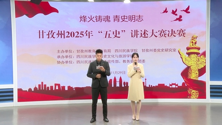 如何让“五史”教育真正走进青年心灵?如何将宏大的历史叙事转化为学生可感可知的青春力量?11月29日,在四川民族学院举办的甘孜州2025年“烽火铸魂 青史明志”“五史”讲述大赛决赛,给出答案。这场由甘孜州教育和体育局、四川民族学院、甘孜州委党史研究室联合主办的活动,不仅是一场比赛,更是一堂融合了历史深度、情感温度与思想高度的沉浸式“大思政课”。