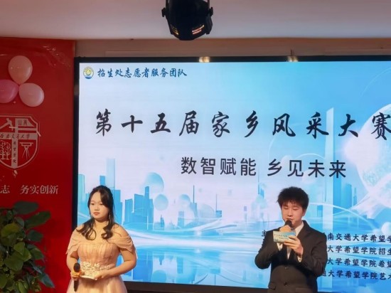 为深入挖掘家乡文化底蕴,展现各地风土人情、时代风貌以及数智化发展水平,搭建青年学子抒发乡愁、交流互鉴的平台。2025年11月14日,西南交通大学希望学院招生处志愿者服务团队精心策划的第十五届家乡风采大赛复赛在6103汇报厅圆满落下帷幕。来自不同地区的参赛选手齐聚一堂,以多元形式勾勒家乡画卷,用真挚情感传递家乡情怀,为现场观众带来了一场兼具文化质感与青春活力的视听盛宴。