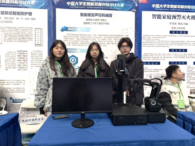 学校参赛团队提交的作品《智能视觉声控机械臂》,聚焦视觉系统在机械臂上的应用,查阅国内外相关文献200余篇,反复打磨设计方案,备赛期间,团队成员分工协作,利用假期及周末时间扎根实验室,完成零件3D打印、程序编写、整机调试等全流程工作,最终形成兼具创新性与实用性的优秀成果。决赛现场,学校学子凭借清晰的逻辑阐述、流畅的现场答辩以及作品稳定的性能表现,赢得了评审专家的一致认可。评审专家认为,该作品紧扣大赛主题,贴合实际应用需求,在技术创新与市场价值方面均具有较高潜力,充分体现了当代大学生的创新精神与社会责任感。