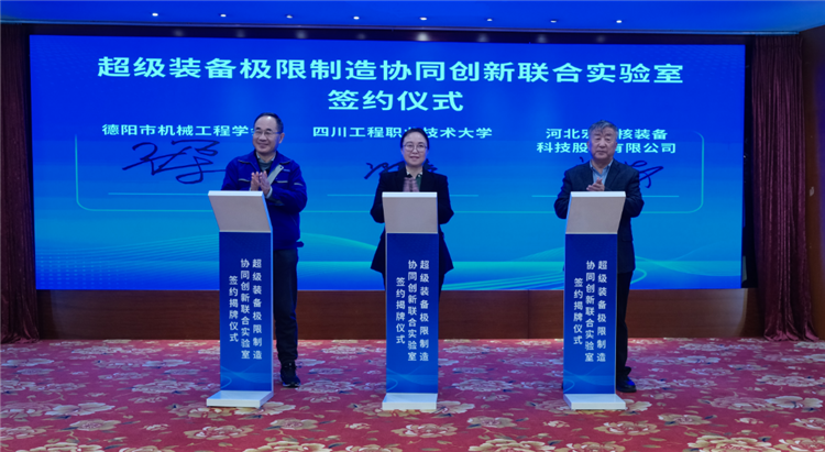 据悉,该实验室由学校、河北宏润核装备科技股份有限公司、德阳市机械工程学会三方共建,旨在围绕高端装备制造领域建设协同创新平台。此前,学校联合德阳市机械工程学会赴河北宏润核装备科技股份有限公司进行实地考察与技术交流,为三方共建实验室奠定了坚实基础。下一步,实验室将坚持“合作共建、资源共享、优势互补、互利共赢”的原则,“三方协同、两地联动”,重点围绕极限制造、协同制造与智能制造等领域开展协同创新,深化产学研用一体化发展,促进科技创新与高层次技术技能人才培养深度联动,为推进高端装备制造业自主可控、制造强国战略实施贡献力量。
