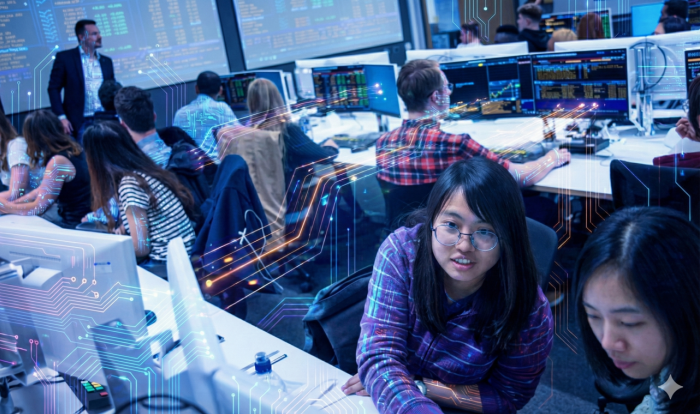 本项目课程体系构建了从数理基础到数字技术的四阶递进模式,深度整合了英方先进的教学资源,包括全英领先的配备彭博(Bloomberg)终端的金融市场实验室、专注商业创新的大数据与人工智能实验室(Big-DEAL)以及全欧规模最大的布里斯托机器人实验室(BRL)的科研理念。这种“经济理论筑基、数字技术赋能”的培养方案,通过项目制学习(PBL)与沉浸式双语教学,确保学生不仅掌握Python、大数据、区块链等核心技术工具,更能深刻理解数字贸易规则与商业逻辑。