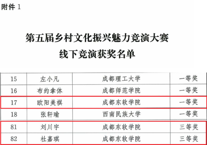 成都东软学院学子在四川省第五届乡村文化振兴魅力竞演大赛中荣获佳绩