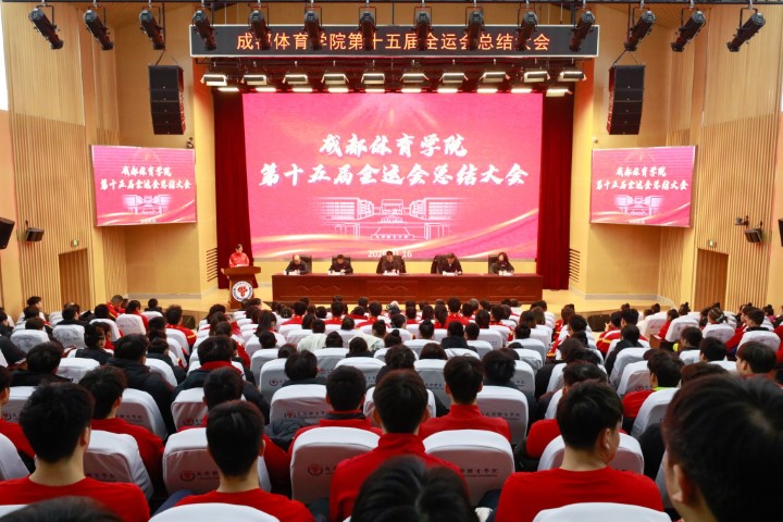 党委副书记、校长胥万兵作总结讲话,对全校在本届全运会上取得的成绩给予高度肯定。他指出,本届全运会学校学子共斩获12金18银19铜,创下历史最佳战绩,竞技体校作为核心力量超额完成任务,多个项目实现历史性突破,不仅为学校与四川赢得荣誉,更彰显了我校体教融合育人模式的丰硕成果。