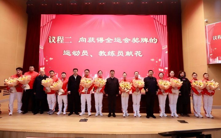 胥万兵强调,成绩的取得,是全体运动员披星戴月、刻苦拼搏的结果,是教练员团队科学执教、无私奉献的结果,更是学校“训科医教服”一体化体系坚实支撑、全校上下协同联动的结果。针对下一阶段工作,他指出,要深学笃行习近平总书记关于体育的重要论述,锚定体育强国使命;要深耕体教融合实践,提升竞技育才质效;要统筹项目布局优化,拓宽竞技体育发展维度;要深化科技赋能训练,筑牢核心竞争根基;要织密多维保障网络,夯实高质量发展底盘;要厚植体育精神沃土,凝聚实干奋进力量。希望大家砥砺前行,推动学校竞技体育事业再攀高峰,为体育强国、体育强省建设贡献更多“成体力量”!