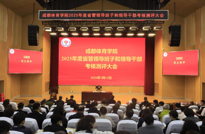 3月13日下午,成都体育学院在行健楼同传室举行2025年度省管领导班子和领导干部考核测评大会。省委组织部考核组相关同志参加会议,学校中层副职以上干部,职代会、教代会负责人,在校的省、市党代表、人大代表、政协委员,民主党派在校主要负责人,校学术委员会成员参会。会议由党委书记石静主持。