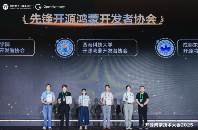 与华为的深度合作堪称典范。除了此次获奖项目,学校教师团队在国产操作系统领域同样表现突出:深耕开源鸿蒙教育四年,教师团队主导的《基于HarmonyOS的移动应用开发课程教学改革》项目,曾斩获首期“国产软件进课堂”优秀教学团队金奖;计算机与软件学院副院长仲宝才获评“鸿蒙生态人才建设春雨奖”,代永芳老师获评OpenHarmony“先锋讲师”;学校被OpenHarmony项目群技术指导委员会授予 “2025年度先锋开源鸿蒙开发者协会”称号。