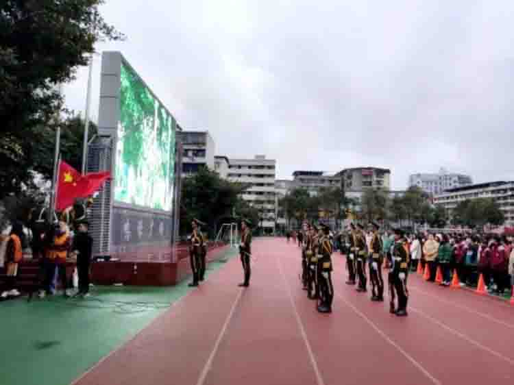 周一清晨,迎着凛冽寒风,朝气蓬勃的遂中学子齐聚操场,在学校五月梧桐朗诵社社长,初2.2班王思阅同学的带领下,面对鲜艳的五星红旗庄严宣誓,铮铮誓言响彻校园。