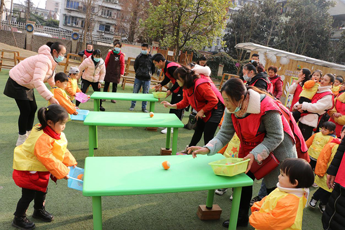 操场上,《袋鼠跳》《小球滚滚乐》《猪八戒背媳妇》《狼来了》《小兔抢圈圈》《剪羊毛》《小马过河》等精彩的亲子赛事轮番上演,每一个游戏都无不考验家长和幼儿之间的默契。