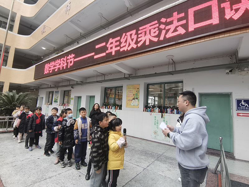 “九九乘法口诀表”是数学学习的基础,背诵乘法口诀表可以为小学生数学学习打下坚实的基础。为强化数学基础知识训练,重视平时的常规性口算训练,二年级全体同学开展了一次“乘法口诀比赛”活动,本次比赛分为两个活动: