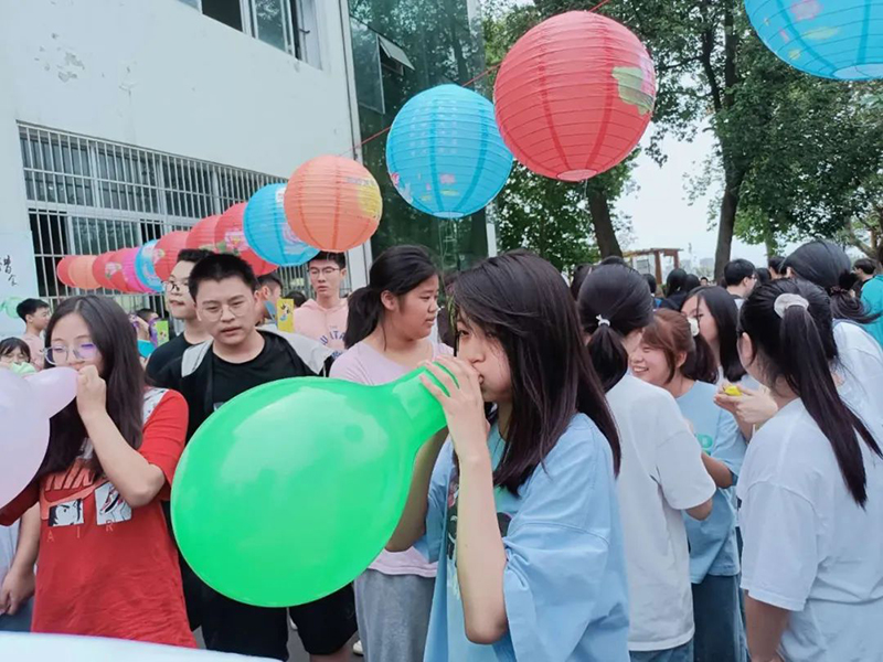 吹气球大赛、呼啦圈比赛……趣味活动让学生们笑得合不拢嘴。