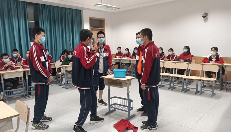 遂宁中学统筹部署,精心安排,三个校区在做实做细疫情防控措施的同时,针对留校学生,学校量身打造了班级课表,实行线上教学+线下教学相结合的方式教学,极大缓解了在校学生不能归家的心理压力。在介福校区和育才校区,志愿老师化身为学生的“守护者”,对留校学生进行上课。而在高新校区,老师们更是用执着与坚守诠释着教育人的责任与担当,成为学生在学习和生活中状态的“稳定剂”。