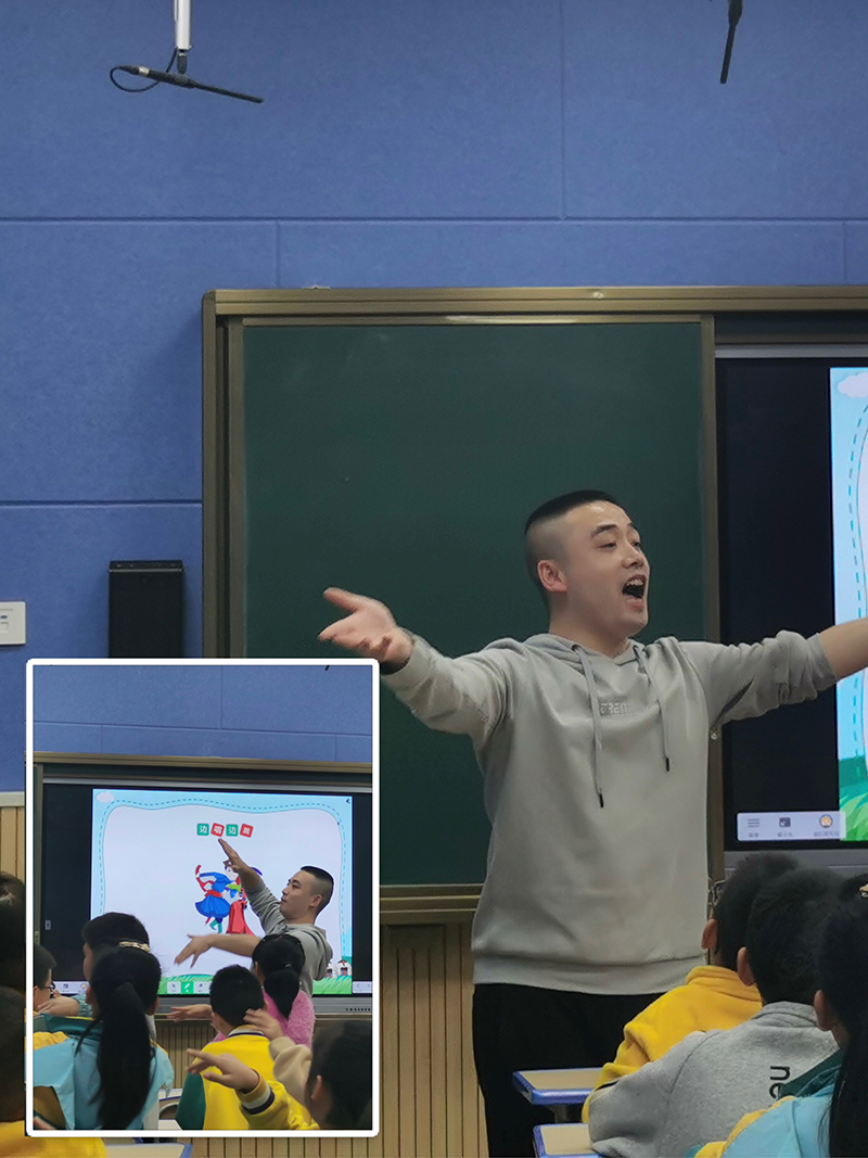 苏宇老师执教的是《乒乓变奏曲》,作为一堂欣赏课,苏老师采用了丰富有趣的课堂导入,带来了两个老朋友顿音和连音线,同学们用简单的旋律进行演唱,复习了顿音和连音,也达到了练声的效果。苏老师以变奏曲作为切入点,分段聆听了5个变奏,让同学们感受到每个变奏的不同,配合变奏加入律动,让同学们聆听音乐,感受音乐,从音乐中体会到快乐。