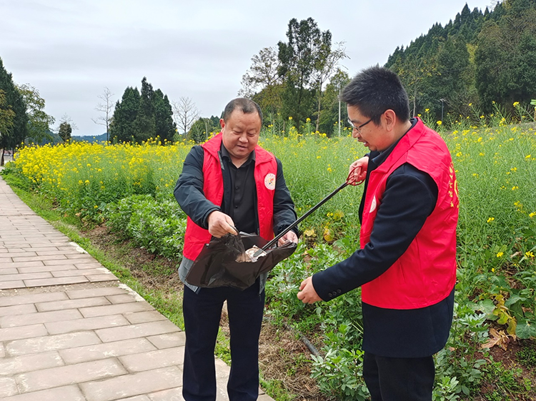 随后,党员同志们来到永兴镇新开村党群服务中心,手执党旗,重温入党誓词,“我志愿加入中国共产党,拥护党的纲领,遵守党的章程……对党忠诚,积极工作,为共产主义奋斗终身,宣誓人…”学校的党员同志以坚定有力的宣誓,表达不忘初心、矢志奋斗的信念和决心。在永和家园,学校党员志愿者还主动清理“白色污染”,清除田埂杂草。