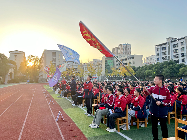 此外,会议还进行了班旗班魂宣示、学生干部受聘仪式、年级学生集体宣誓和才艺展演等活动。旨在通过多元化的展示平台,助力学生成长发展。