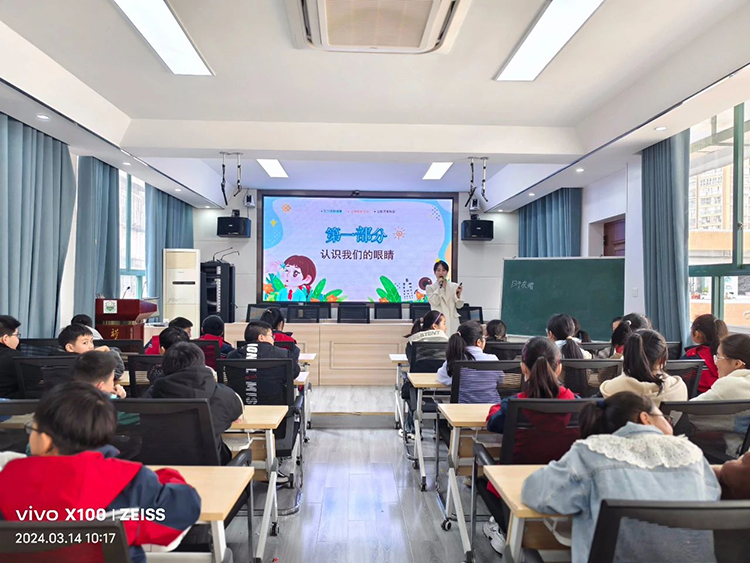 杨雅婷医生的《保护眼睛 爱护视力》讲座中,向学生们介绍了近视眼的成因,分享了日常护眼小技巧,提醒同学们要养成良好的用眼习惯,增加户外活动时间等方式来保护好自己的视力。