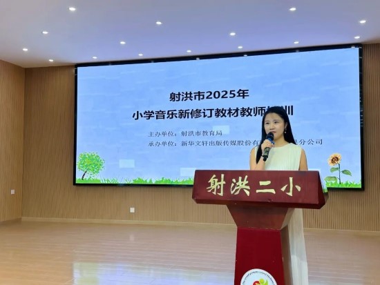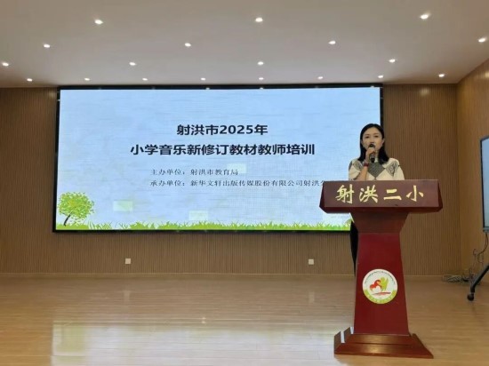 射洪市小学名师工作室领衔人田珊老师对本次新教材培训作了总结讲话,她指出:工作室将以此次培训为起点,持续开展新教材教学实践研讨、优秀课例打磨等活动,推动新教材理念在课堂落地生根,助力区域小学音乐教育质量再提升。