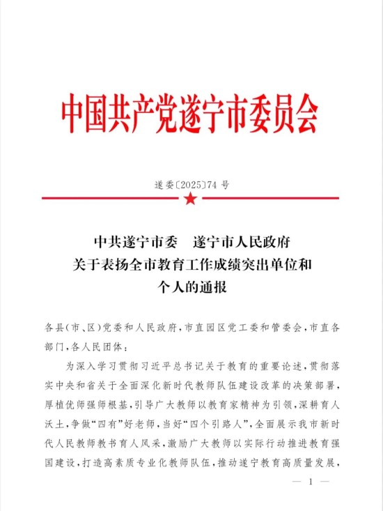【喜报】热烈祝贺我校教师获中共遂宁市委、遂宁市人民政府表彰