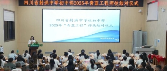 “青蓝相继,薪火相传”。为充分发挥骨干教师的“传帮带”作用,助力青年教师快速成长,9月16日晚,射洪中学初中部隆重举行2025年“青蓝工程”师徒结对仪式,仪式由教科室副主任罗丹主持,学校行政领导、教研组长、备课组长及2023、2024年结对师徒共同参与,见证这一责任与希望交织的时刻。