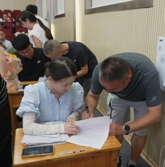 师徒共同签订《师徒结对协议书》,正式建立帮扶关系。协议明确师徒职责,象征教学相长、同心协力的承诺。